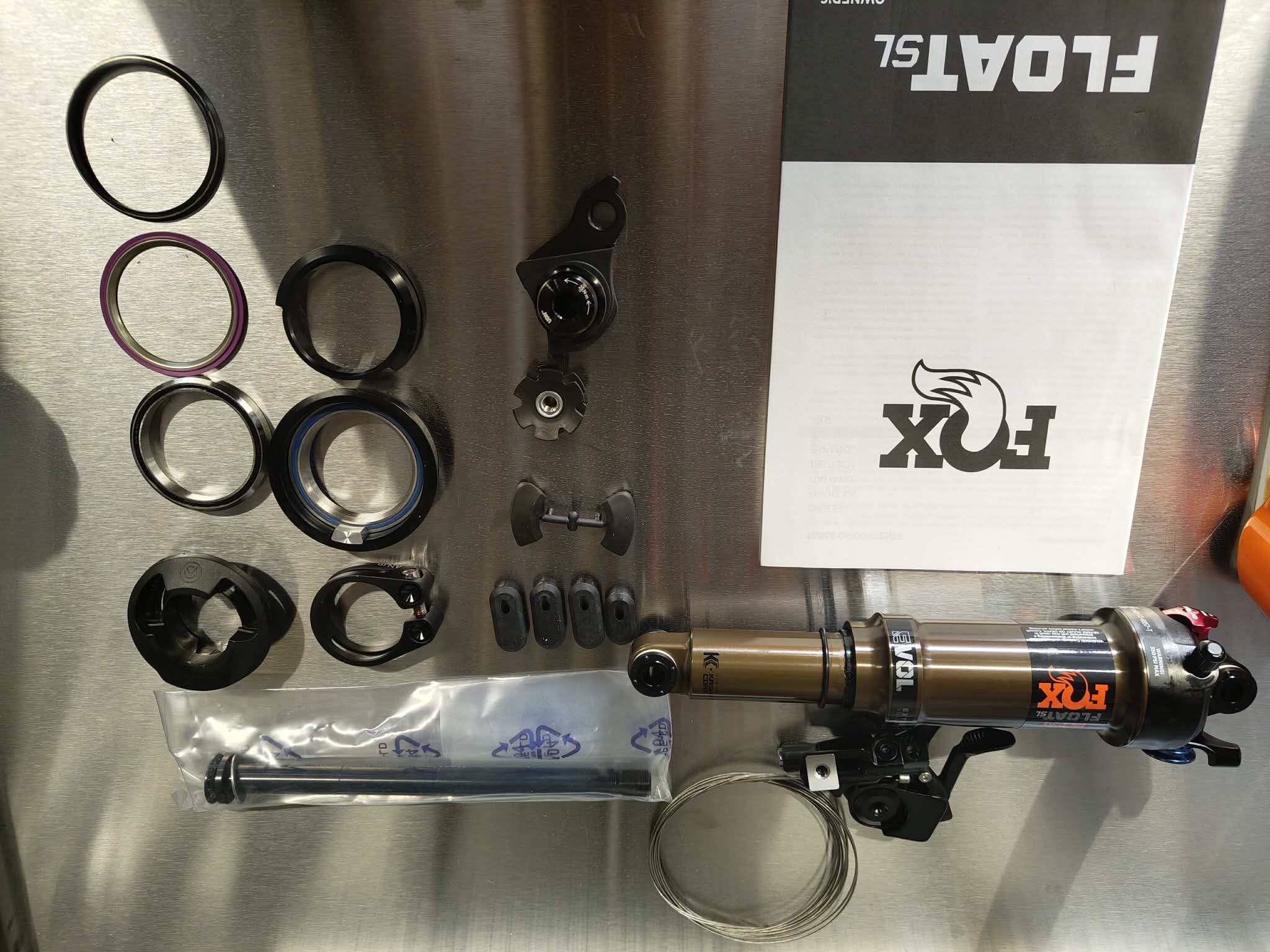 Zestaw zawiera: Rama, widelec, damper, łożyska sterów, osie kół, zacisk sztycy, gumy i uszczelnienia